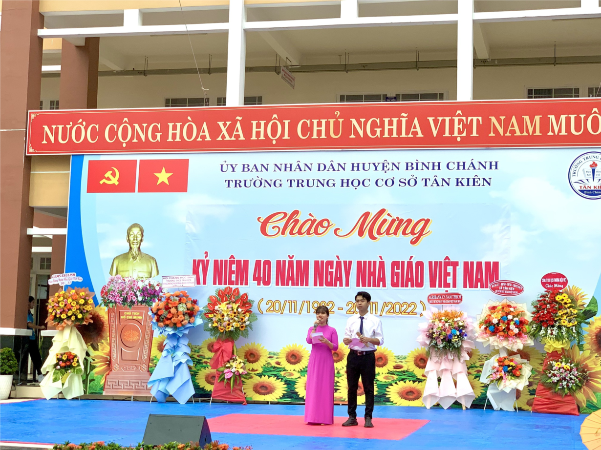 Sáng ngày 19/11, Trường THCS Tân Kiên long trọng tổ chức lễ kỷ niệm 40 năm ngày Nhà giáo Việt Nam (20/11/1982-20/11/2022). Dự buổi lễ có lãnh đạo Đảng ủy, HĐND, UBND, MTTQ, các đoàn thể, Ban giám hiệu nhà trường và toàn thể các thế hệ nhà giáo đã và đang công tác tại trường.